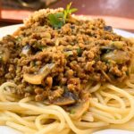 Add your sliced mushrooms to the ground beef and cook for approximately 3 minutes.