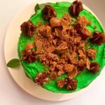 Break the bar into pieces and use them to garnish the cakes. These bits and pieces of the aero mint bar attract all the children to this cake!
